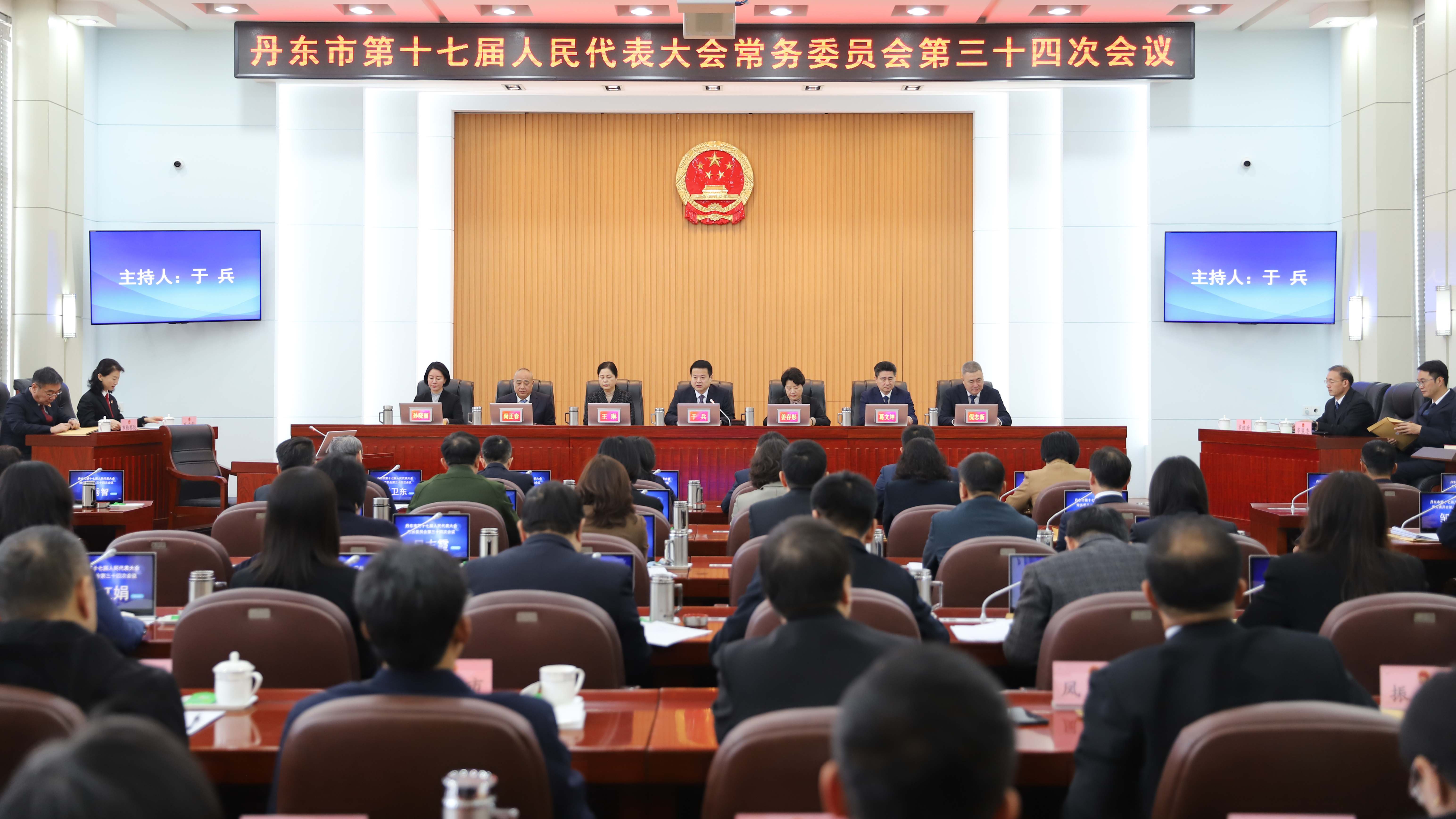 3月26日,市十七届人大常委会举行第三十四次会议。市人大常委会主任于兵主持会议,副主任姜存彤、王琳、葛文坤、尚正春、倪志新,秘书长孙晓丽和委员共49人出席会议。